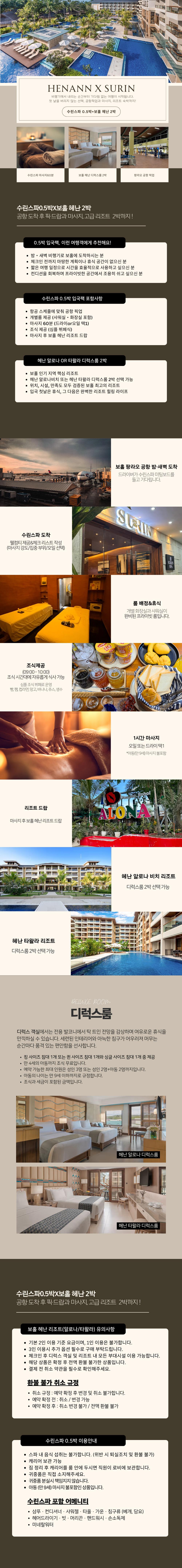 수린스파 0.5박 입국팩 진행 후 헤난 리조트 2박 투숙 가능 상품입니다.